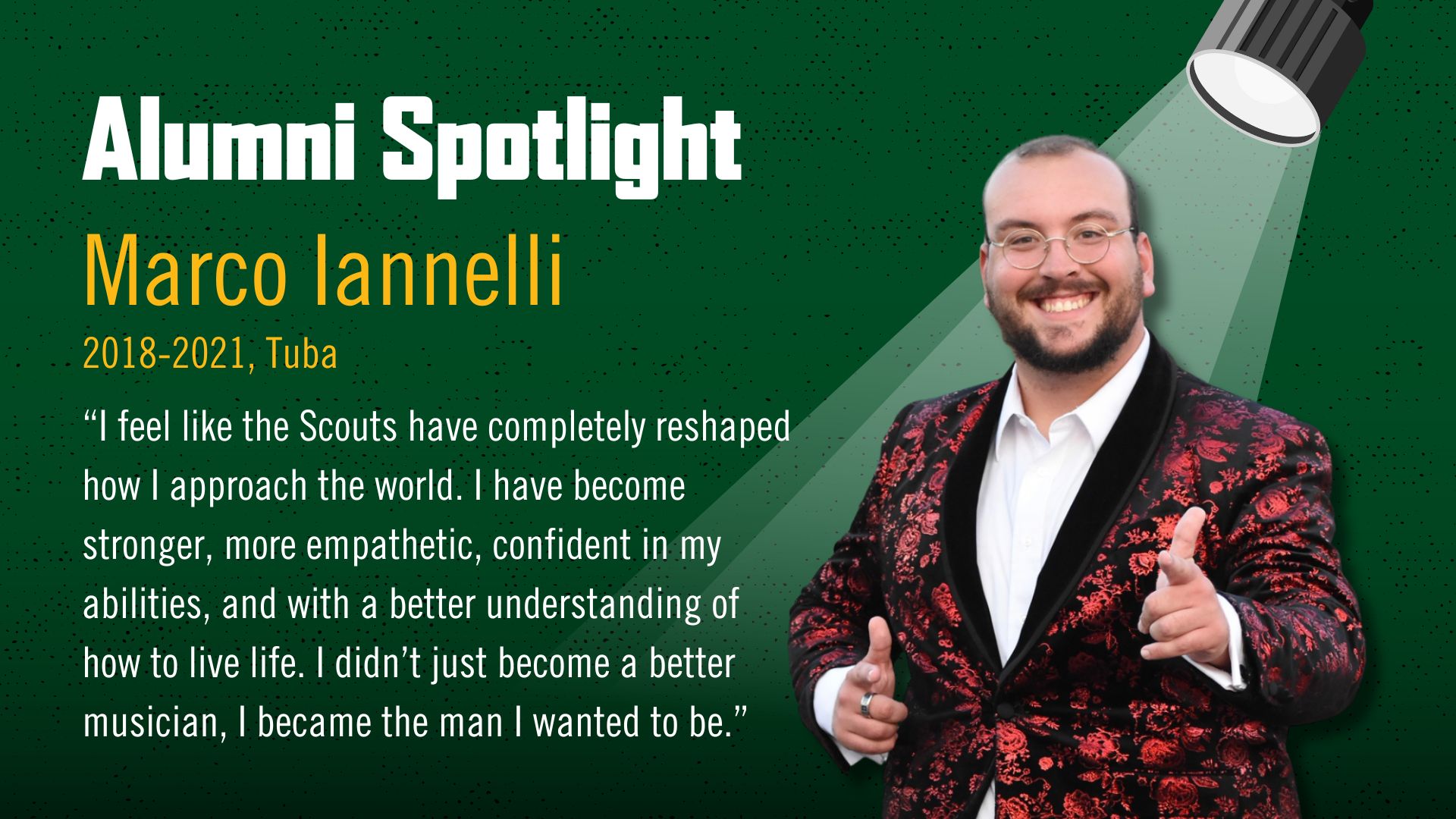 Through the story of our monthly spotlighted alum, we’ll learn who they were during their time with the Scouts, who they’ve become today, and the profound impact the Madison Scouts had on their lives. From life-changing lessons learned on the field to lifelong friendships and career-defining moments, the Alumni Spotlight is your chance to see how the Madison Scouts experience resonates far beyond the drum corps season.